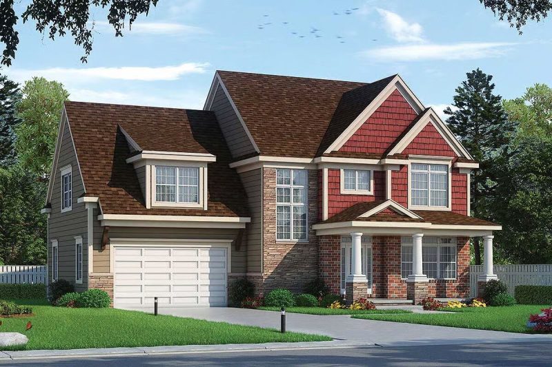 Specifications Area: 2,607 sq. ft. Bedrooms: 4 Bathrooms: 3 Stories: 2 Garages: 2 Welcome to the gallery of photos for Traditional House with Main-Floor Guest…