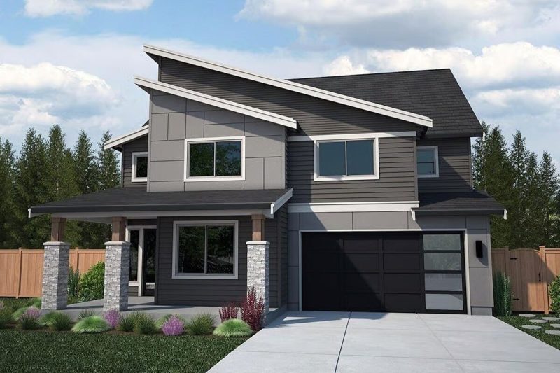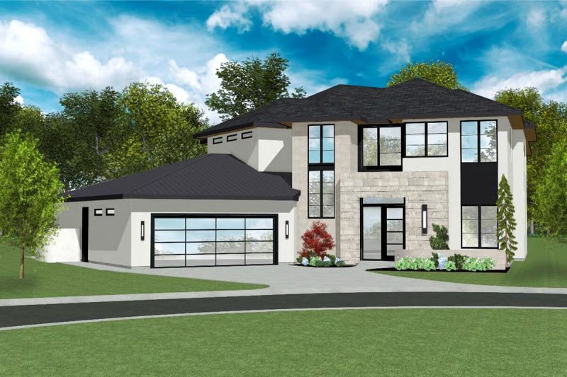 Specifications Area: 4,088 sq. ft. Bedrooms: 3-4 Bathrooms: 4 Stories: 2 Garages: 3 Welcome to the gallery of photos for Transitional 2-Story Home with Angled…