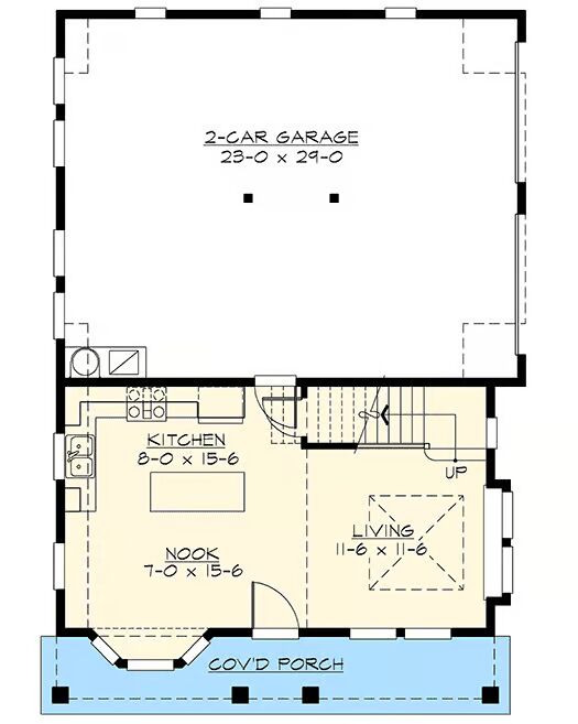 Perfect as a vacation home, carriage house, or guest outbuilding, this versatile design maximizes comfort and function within a compact footprint.