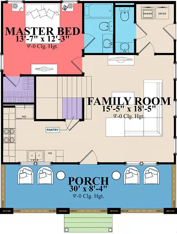 An inviting 8’4″-deep front porch sets the tone, creating the perfect spot for morning coffee or relaxing evenings outdoors.