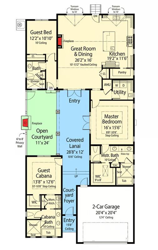 Welcome to the gallery of photos for 2071 Square Foot Mediterranean House with Guest Cabana. The floor plan is shown below: