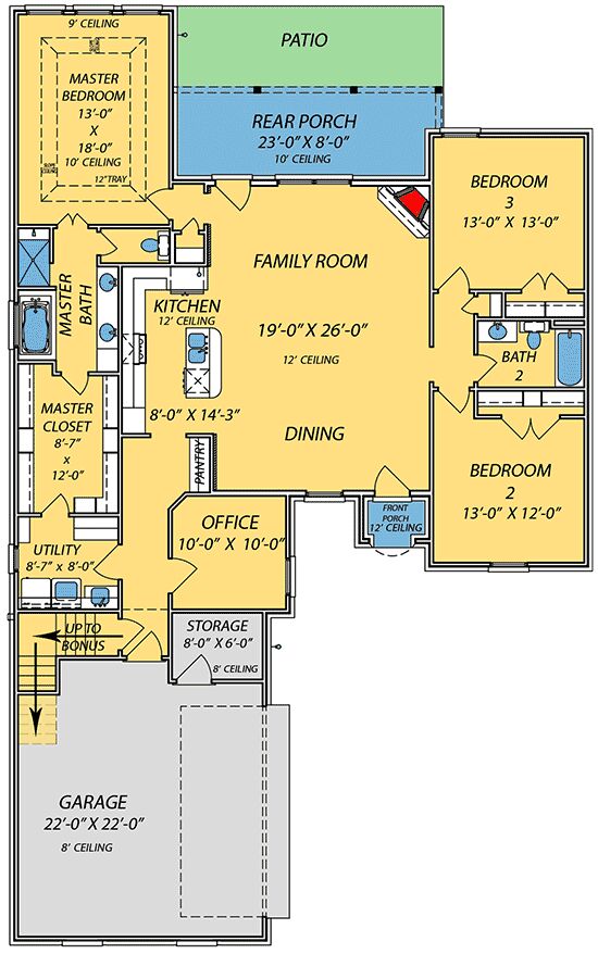 A bonus room above the garage, offering an additional 345 sq. ft., provides flexible space that can be finished later to suit your needs—whether as a guest suite, media room, or hobby area.