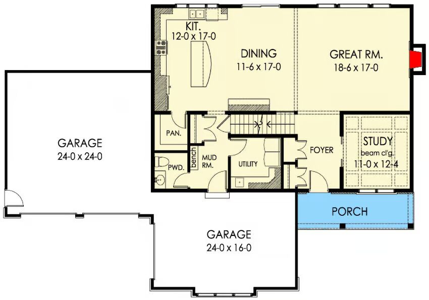 4-Bedroom Kensington II – A: Craftsman-style bungalow (Floor Plans)