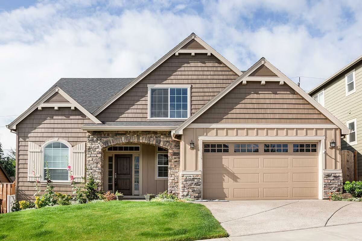 Enhance this inviting home’s curb appeal with decorative brick or stone accents, adding warmth and texture to its charming façade.