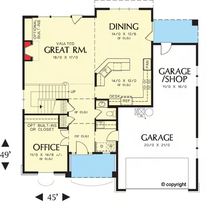 Mid-Century Modern Craftsman House with Home Office Under 3200 Sq Ft (Floor Plans)