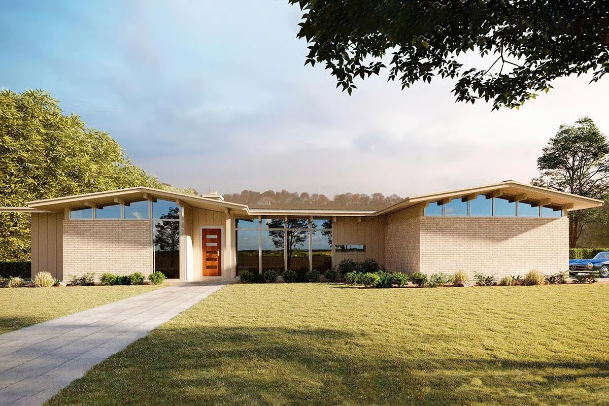 Flooded with natural light from oversized windows, this exclusive Mid-Century Modern Ranch home embraces contemporary living with its low-pitched roofline and deep overhanging eaves.