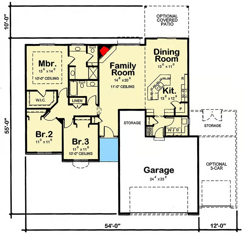 This one-level Tuscan home impresses with eye-catching stonework and timeless curb appeal. Offering flexibility, the plan includes a 2-car garage with storage or an optional 3-car garage to suit your needs.