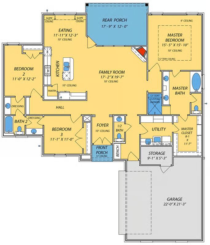 Welcome to the gallery of photos for Southern Acadian Home with Split-Bed Layout. The floor plan is shown below: