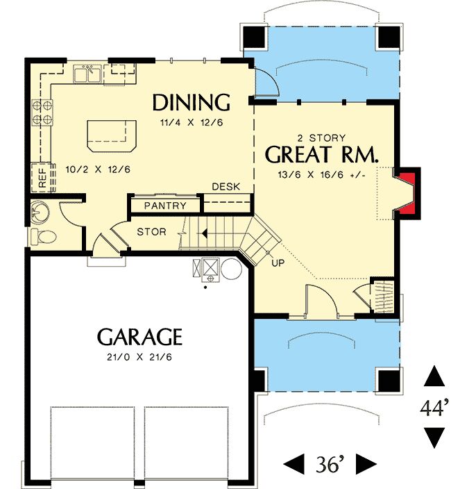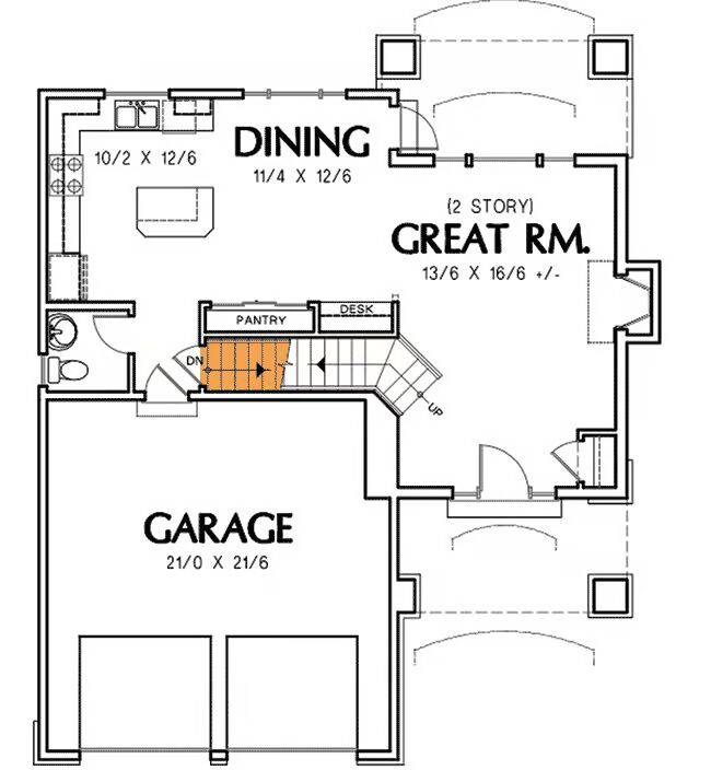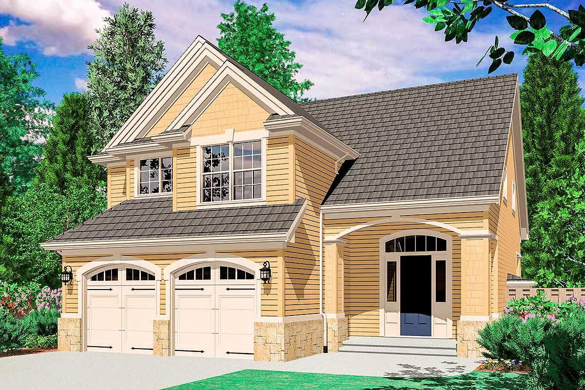 A trio of gables and a welcoming front porch lend charming curb appeal to this thoughtfully designed home—perfect for smaller lots without sacrificing modern comfort.