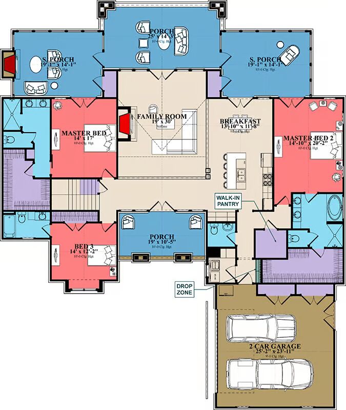 Welcome to the gallery of photos for Country Lake House Under 3800 Square Feet with Two Master Suites. The floor plans are shown below: