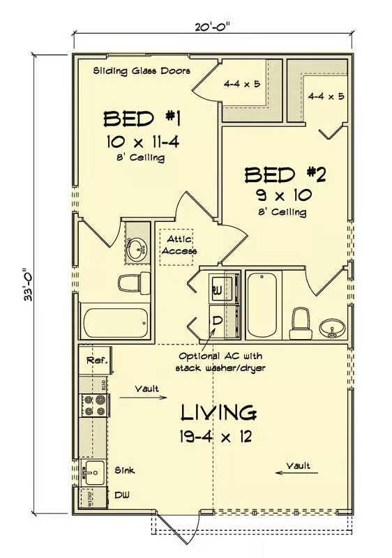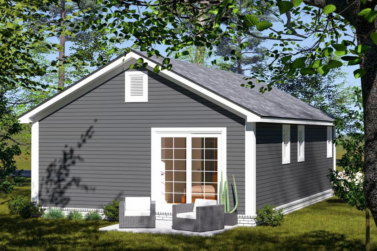 This charming one-story cottage offers 660 square feet of thoughtfully designed living space, featuring 2 bedrooms and 2 full baths in a compact yet highly functional layout.