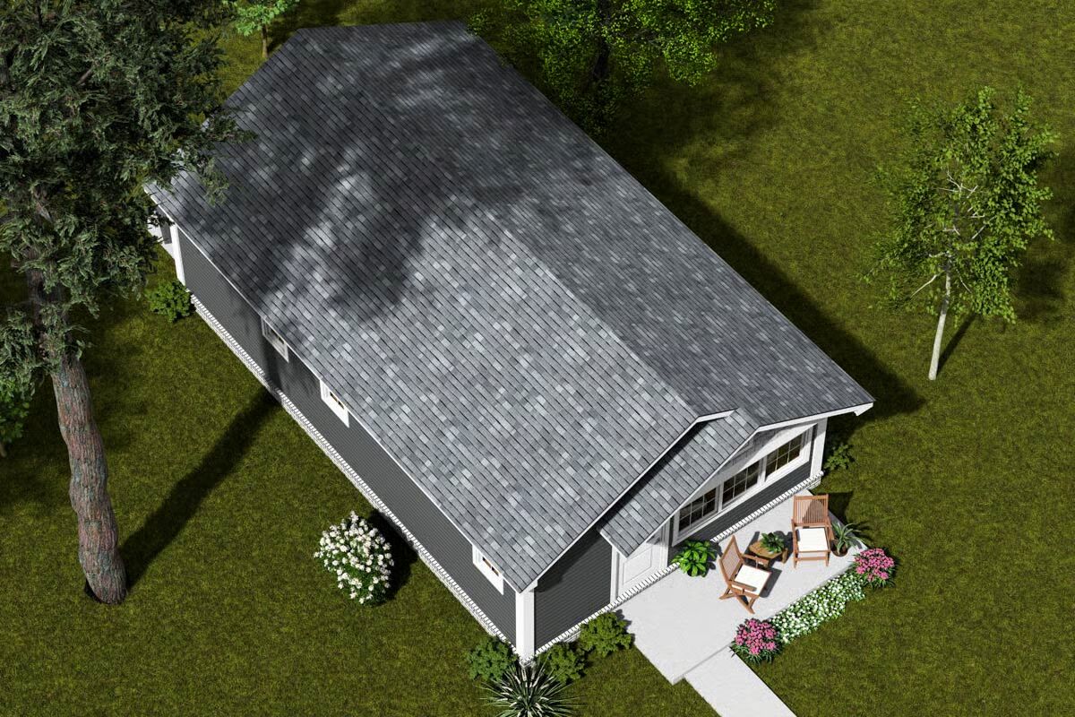 2-Bedroom Modern House with Open Floor Plan Under a Cathedral Ceiling (Floor Plans)