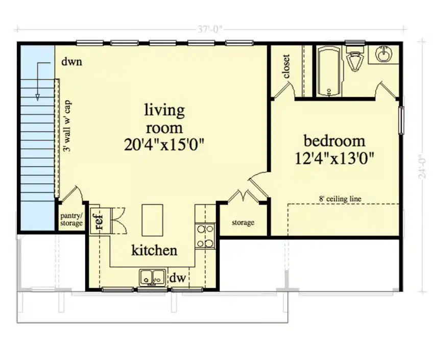 1-Bedroom Narrow footage House with Vaulted Great Room (Floor Plans)