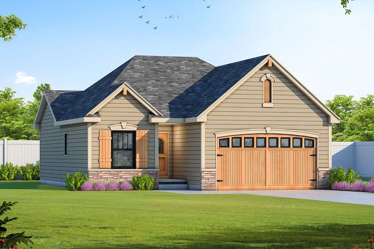 This versatile traditional home showcases timeless curb appeal with forward-facing gables, a stone-accented exterior, and a welcoming presence that blends classic style with modern function.