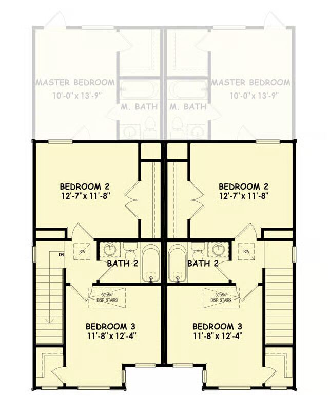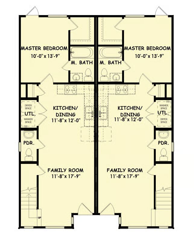 This multi-family house plan offers two spacious units, each providing 1,173 square feet of heated living space—with 699 sq. ft. on the main floor and 475 sq. ft. on the upper level.