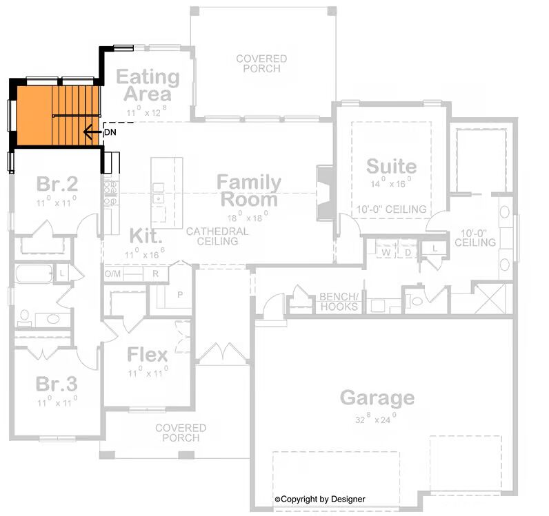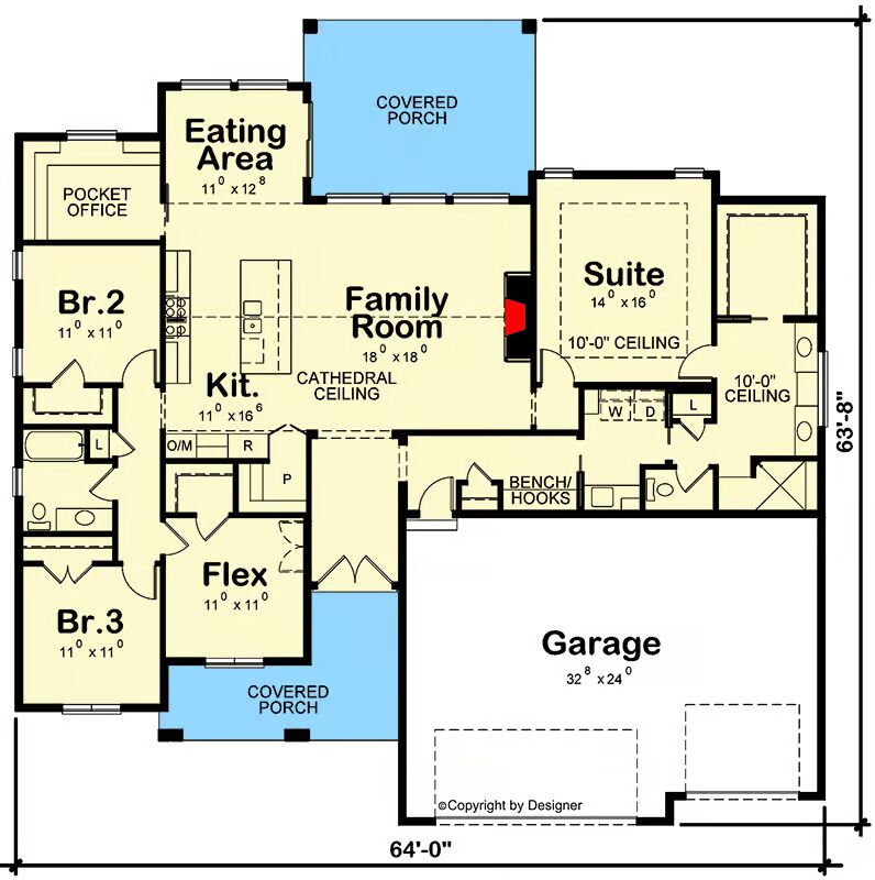 Welcome to the gallery of photos for New American House with Pocket Office and Split-Bed Layout – 2176 Sq Ft . The floor plans are shown below: