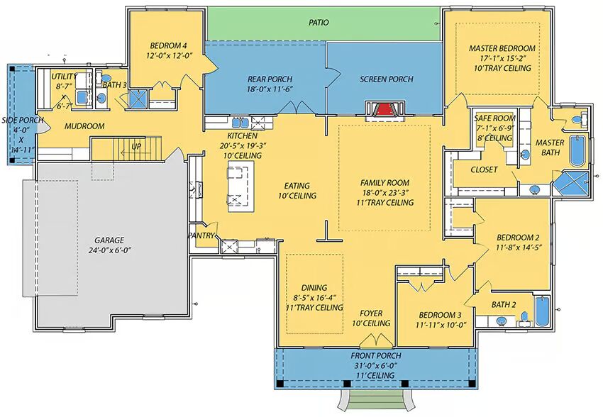 Single-Story, 4-Bedroom Traditional Home with Mud Room (Floor Plans)