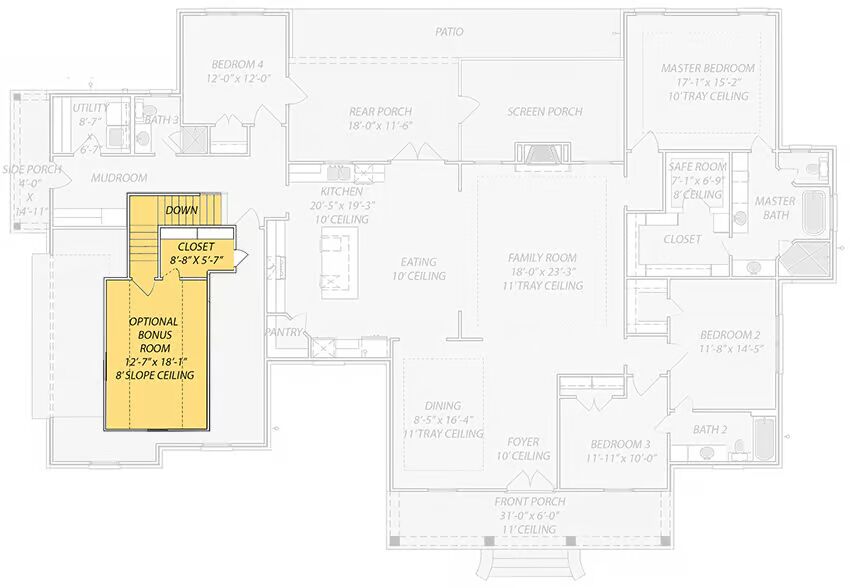 A mudroom with an adjacent staircase leads to an optional 332 sq. ft. bonus room above the garage, perfect for a home office, media room, or guest suite.