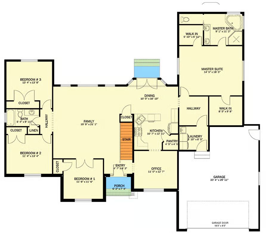 Ranch House with Home Office – 2406 Sq Ft (Floor Plans)