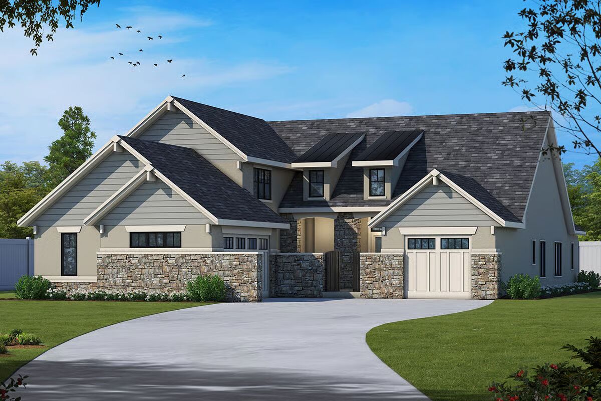Single-Story, 3-Bedroom Craftsman Ranch with Vaulted Family Room (Floor Plans)