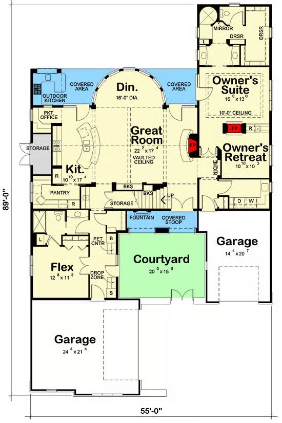 Transitional House with Private Apartment Above Garage (Floor Plans)