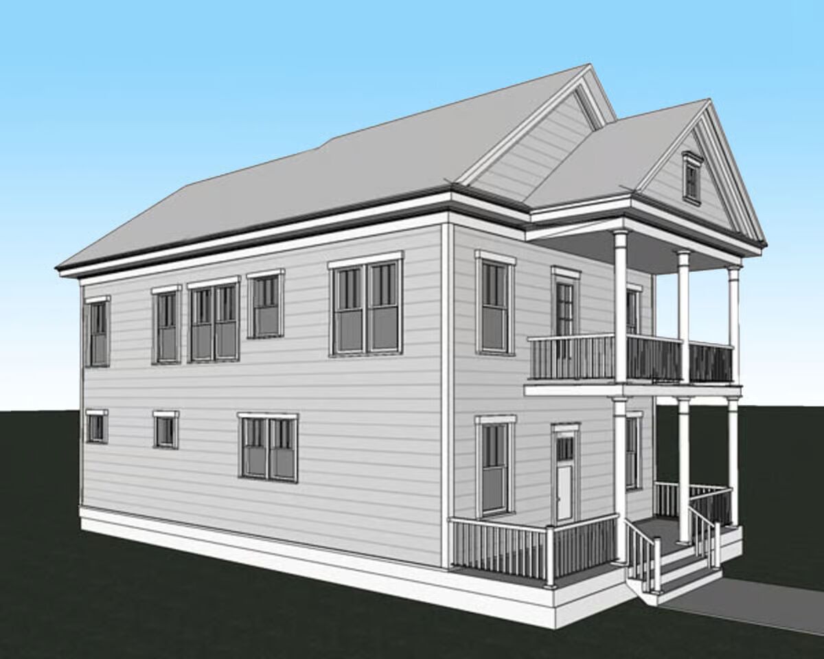 This charming two-story Southern-style home showcases graceful stacked front porches and a smart, space-efficient design that maximizes every inch of its narrow footprint.